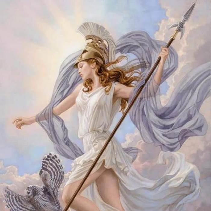 Афина Паллада или же просто Афина, живущая на Олимпе и входящая в греческий пантеон богов. Богиня мудрости, знаний, науки, военной стратегии, искусства, ремесел.