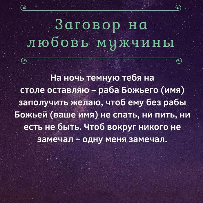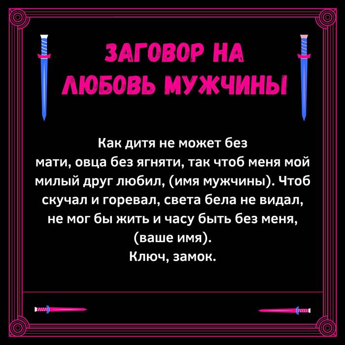 О факте совершения заговора и его исходе говорить никому нельзя. Заговор — это ключик от вашего счастья. Им вы открыли дверь в нужную вам область, в частности — к любви. Если об этом рассказать, «ключ» автоматически попадает в чужие руки, дверь может захлопнуться, заговор потеряет силу или сработает вам во вред.