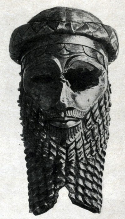 Бронзовая голова в натуральную величину, найденная в траншее в Ниневии, дает нам возможность ближе познакомиться с внешностью Нарам-Сина. Археологи относятся скептически к первоначально высказывавшимся идеям о том, что это голова его дедушки Саргона, из- за того, что стиль ее изготовления был выше стиля работ, выполненных ранее. И хотя драгоценные камни были вынуты из глазниц и нос сломался при падении, царственное величие сохранилось. Впрочем, портрет может иметь некоторое сходство с внешностью царя; аккадские художники были, вероятно, первыми, кто пытался сочетать реализм с практическим стремлением удовлетворить человеческое тщеславие.