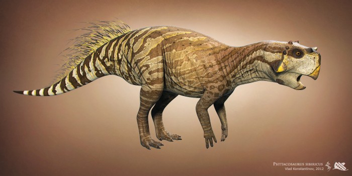 - Пситтакозавр — динозавр инфраотряда рогатых динозавров — травоядные животные, ростом с газель. На верхней челюсти у них имелся мощный клюв, из-за чего им и дали такое название (лат. Psittacosaurus — ящерица-попугай). Пситтакозавр жил на территориях современной Азии.