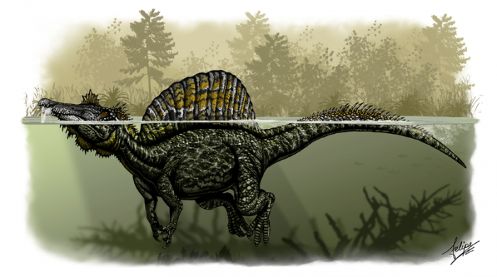 - Спинозавр — динозавр, который обитал в Северной Африке. Спинозавр — это плотоядное животное, которое достигало в длину 17 метров и весило более 7-11 тонн. Одной из характерных черт данного динозавра был огромный вырост на позвоночнике, который также называют «парусом», и предназначение которого до сих пор до конца непонятно. По разным предположениям, это мог быть как плавник (как у акулы), так и жировой горб.