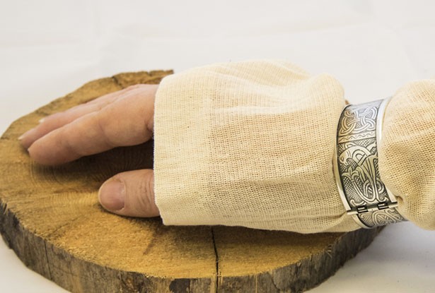 Возможно, в далекие времена такие браслеты служили, чтобы собирать рукава, вместо застежки. Их надевали молодые девушки на праздник Русалий, прямо поверх белых рубах. А уж во время праздника творился волшебный обряд, когда чужие люди покидали поляну в лесу или местечко на берегу реки, девушки снимали обереги, расстегивали русальные браслеты, распускали рукава да становились похожи на волшебных белых птиц. Быть может, именно от свидетелей этого действа и пошли рассказы да сказки о девушках, превращающихся в птиц на берегу реки?