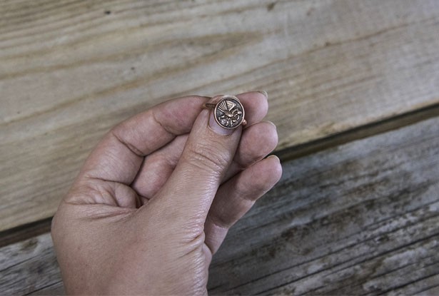 Старинный перстень с птицей и перстень из «Северной сказки», созданный по новгородским образцам.
